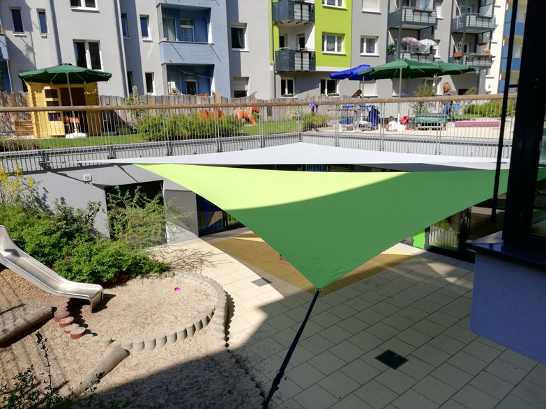 Sonnensegel sind die passende Alternative zur klassischen Markise. Ein Sonnensegel nach Maß hat einige Vorteile zur Markise. Dieses kann sowohl als Dreieck auch als Viereck gearbeitet werden. Oft ist es auch aus architektonischen Gegebenheiten nicht möglich einen Sonnenschirm zu stellen oder eine Markise zu montieren. Auch hier hat das Sonnensegel den Vorteil, da man es genau an die gegebene Situation zuschneiden kann und somit auch Sonderformen möglich sind. Es besteht auch die Möglichkeit, das Sonnensegel auf einer Welle aufzurollen, das sogenannte Rollsegel. Optional kann man die Eckpunkte mit einer Gleitschiene höhenverstellbar montieren, dadurch ist ein besserer Wasserablauf und Blendschutz bei tiefstehender Sonne möglich.